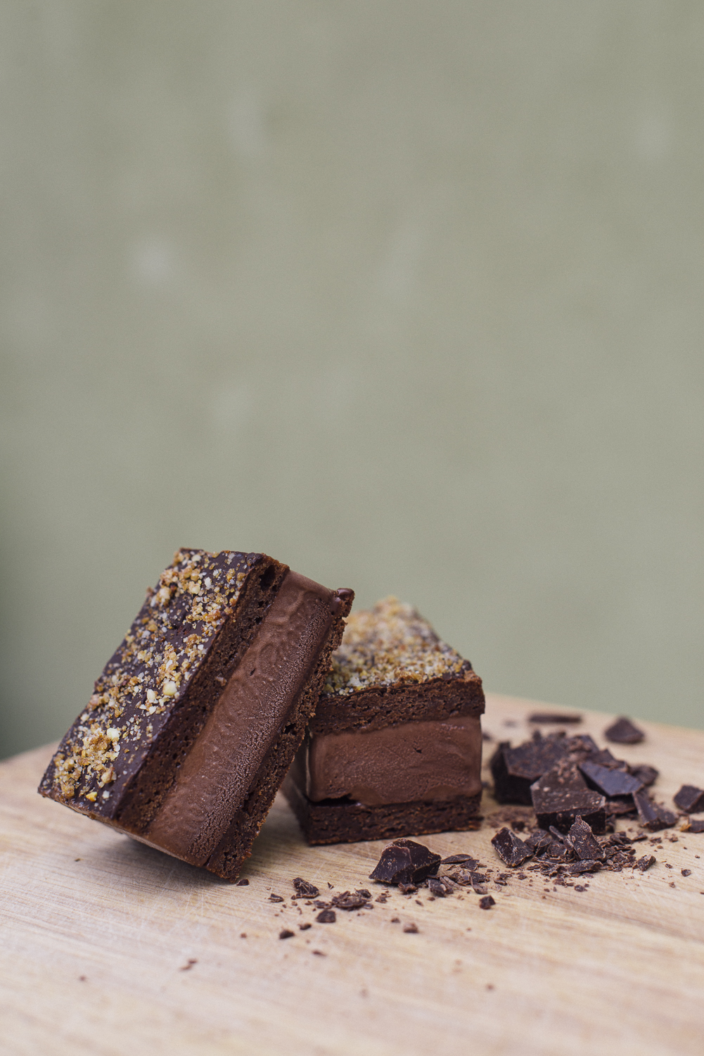 Chocolate-biscuit, dark chocolate ice and almonds glazed in balsamico.