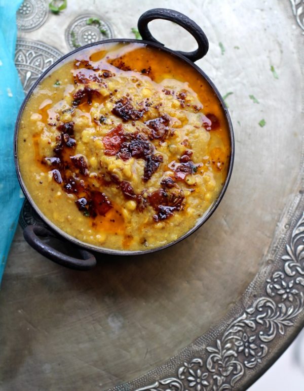 Indian Lentil Soup. Made with Red Lentils, Ginger, Garam Masala, and topped with fresh Coriander. Recommended with Raita. Vegan Course.