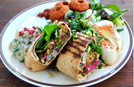 Falafel Sandwiches, Hummous, Tabouleh, Babaganoush, Kibbeh Neie, Salad, Bread and Sauces.