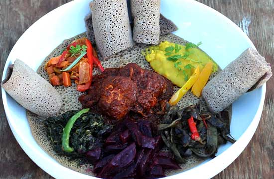 Injera is the National Course of both Eritrea and Ethiopia. Injera is a sourdough based pancake made with Teff, Buckwheat and is gluten free. Along with the Injera, you’ll ge...